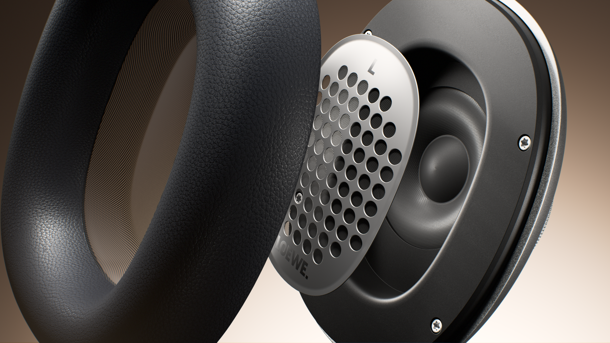 Loewe leo ist aus eloxiertem Aluminium und echtem Leder gefertigt und verbindet dauerhaften Komfort mit zeitloser Qualität. Magnetische Polster und ein Kopfbügel aus echtem Leder erhöhen die Langlebigkeit und den Tragekomfort und ermöglichen gleichzeitig eine mühelose individuelle Anpassung.