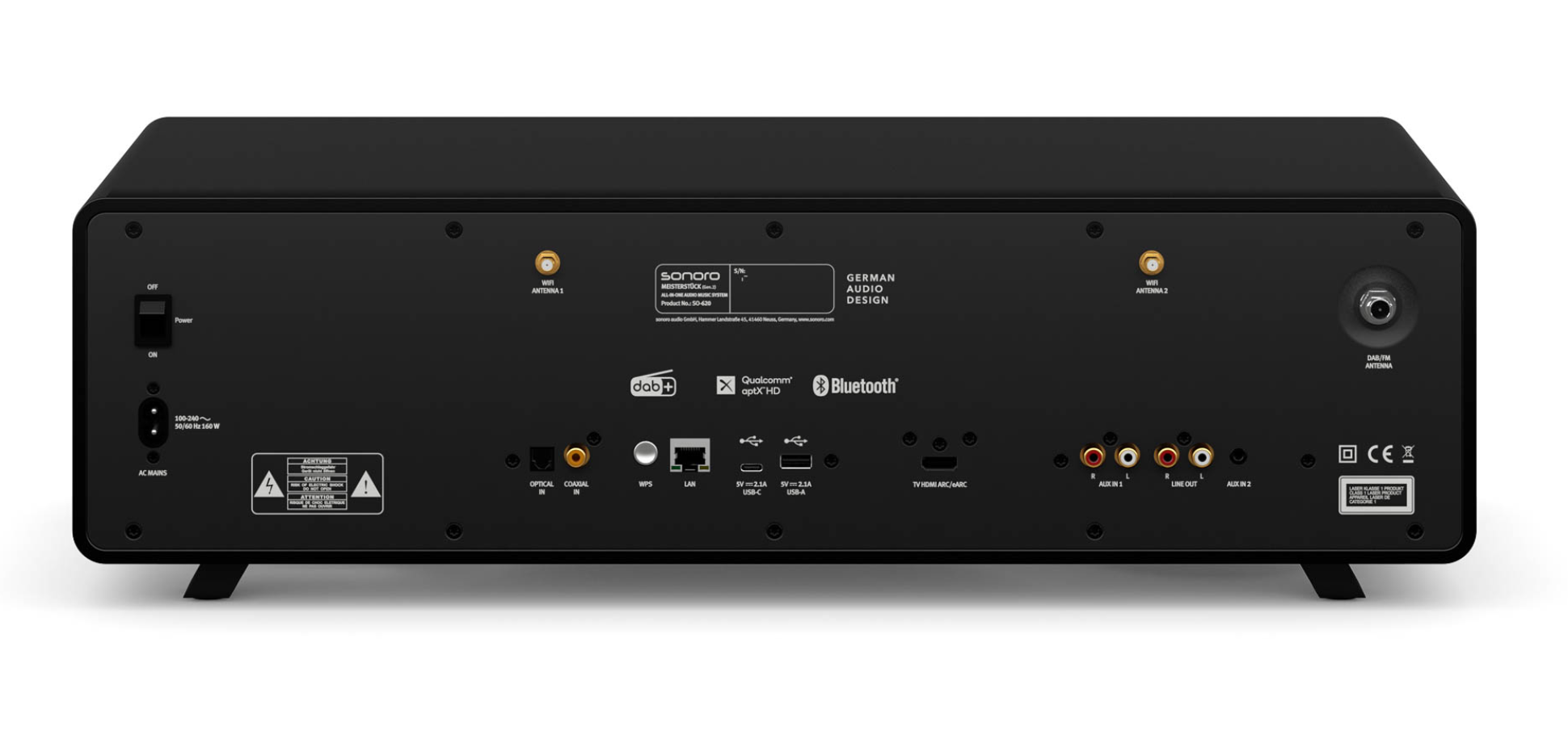 Die Verbindungsmöglichkeiten des MEISTERSTÜCK (Gen.2) sind ebenso vielfältig wie beeindruckend. Mit einer Bandbreite von Optionen, die von kabelgebundenen Anschlüssen wie HDMI, USB-A und USB-C, AUX-In sowie dem digitalen optischen Eingang bis hin zu modernen kabellosen Verbindungsstandards wie WLAN, bidirektionales Bluetooth, AirPlay oder Google Cast reichen, bietet das MEISTERSTÜCK (Gen.2) eine erstaunliche Flexibilität. Nutzen Sie darüber hinaus den integrierten CD-Player, wählen Sie Ihre Favoriten aus FM-, Digital- und Internet-Radio sowie Streaming-Services wie Spotify Connect, Qobuz Connect oder TIDAL Connect aus. Diese vielseitige Auswahl ermöglicht es, die bevorzugten Geräte mühelos anzuschließen und ein audiovisuelles Erlebnis auf höchstem Niveau zu genießen.